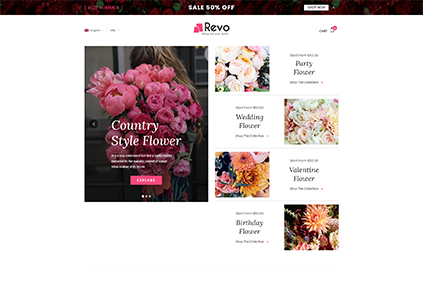 名称:A208 鲜花商店外贸独立站模板